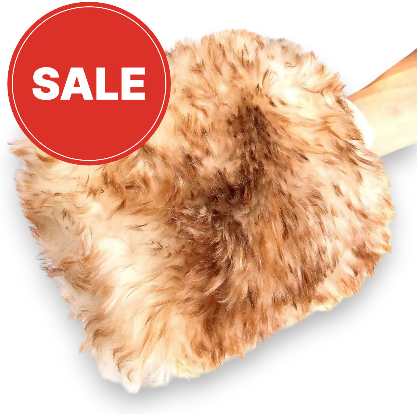 Like all our lambswool mitts, this one is 100% natural with a proper sheepskin lining as well as sheepskin fleece, unlike the cheaper mitts out there. But beware - mitts as natural as this don't last forever... never allow the mitt to fully dry out (regular use is essential), never leave it immersed in water and keep it well away from washing machines, tumble driers and closed polybags.