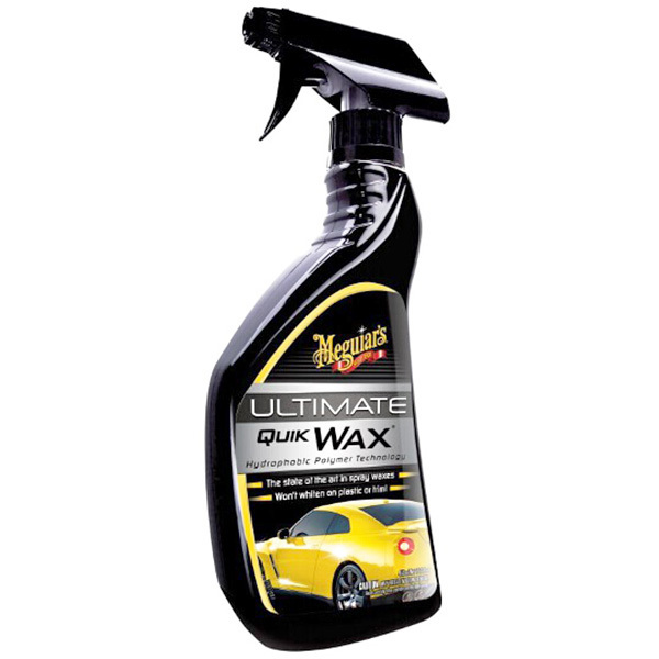 Meguiars New Ultimate Quik Wax features Meguiars Hydrophobic Polymer Technology to give your vehicle's paint unparalleled protection and gloss. The polymer-based spray wax can be applied in direct sunlight on hot surfaces with no streaking or white residues.
