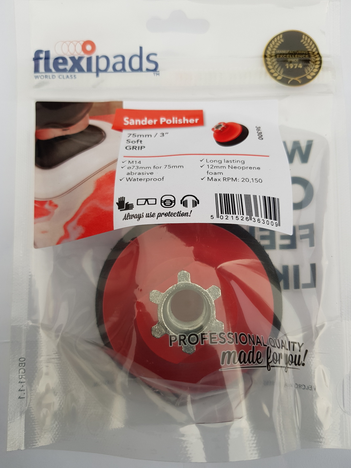 This Rotary Soft Mount 75mm for use with 75-100mm Velcro style spot pads. It has a foam cushion which is ultra-soft and flows over the plastic edge for extra safety. M14 fitment.